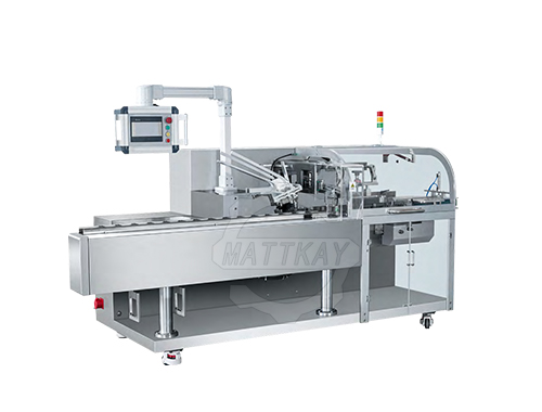 更具有產品進盒不到位或卡料自動停機,缺紙盒自動報警,無產品不開盒,觸摸屏自動顯示故障,并停機報警,顯示機器操作及維修方式。
